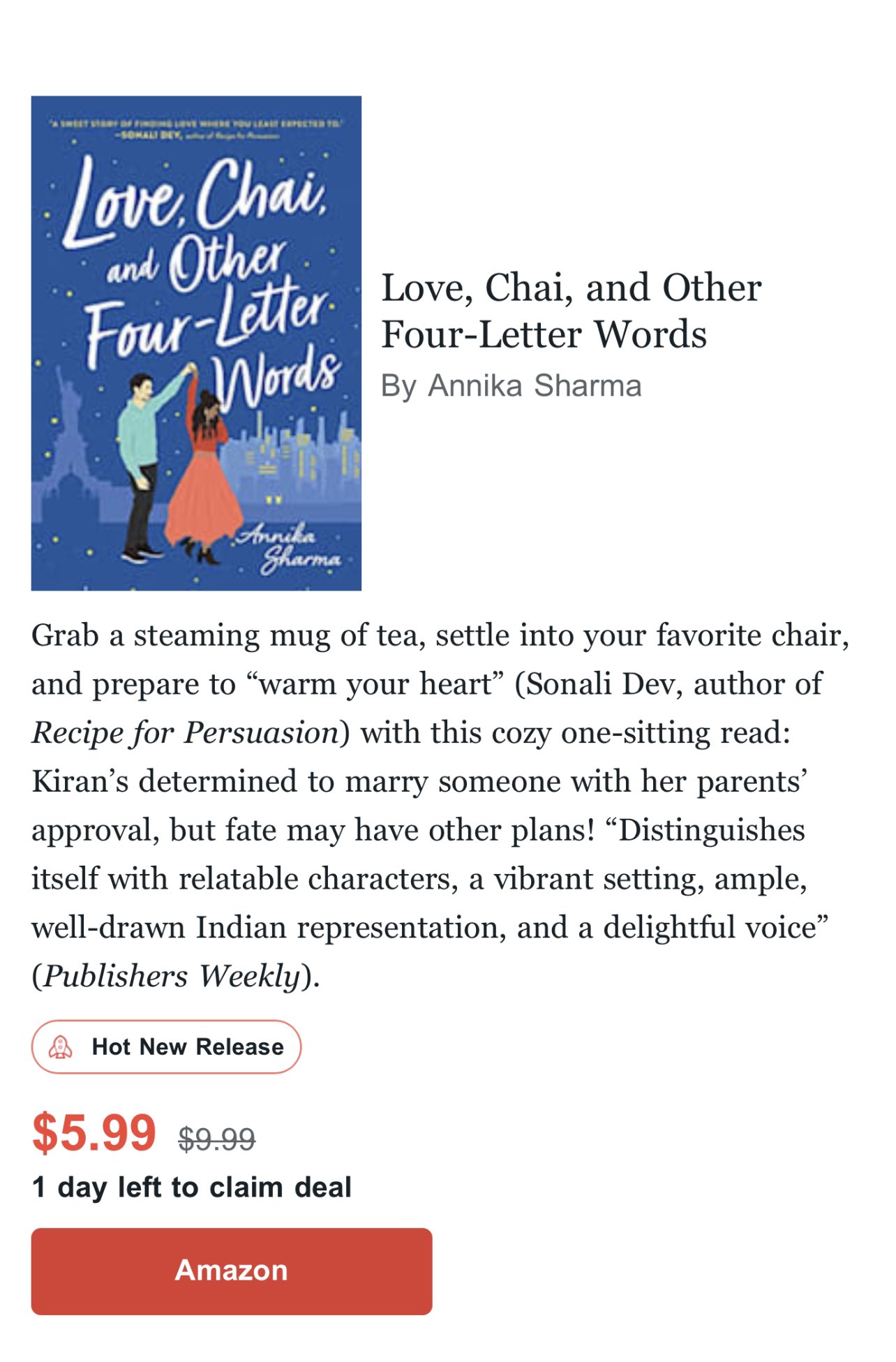 Annika Sharma Love Chai Out Now On Twitter Icymi Love Chai And Other Four Letter Words Is On Bookbub Short List Today And It S On Sale For 5 99 On Digital Platforms Https T Co R3fjojdcoc